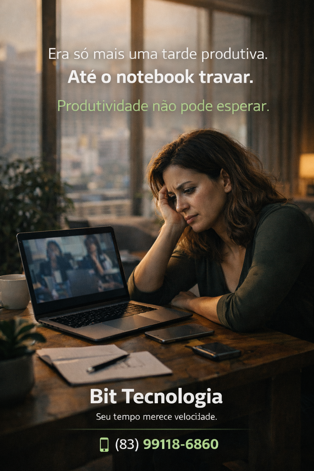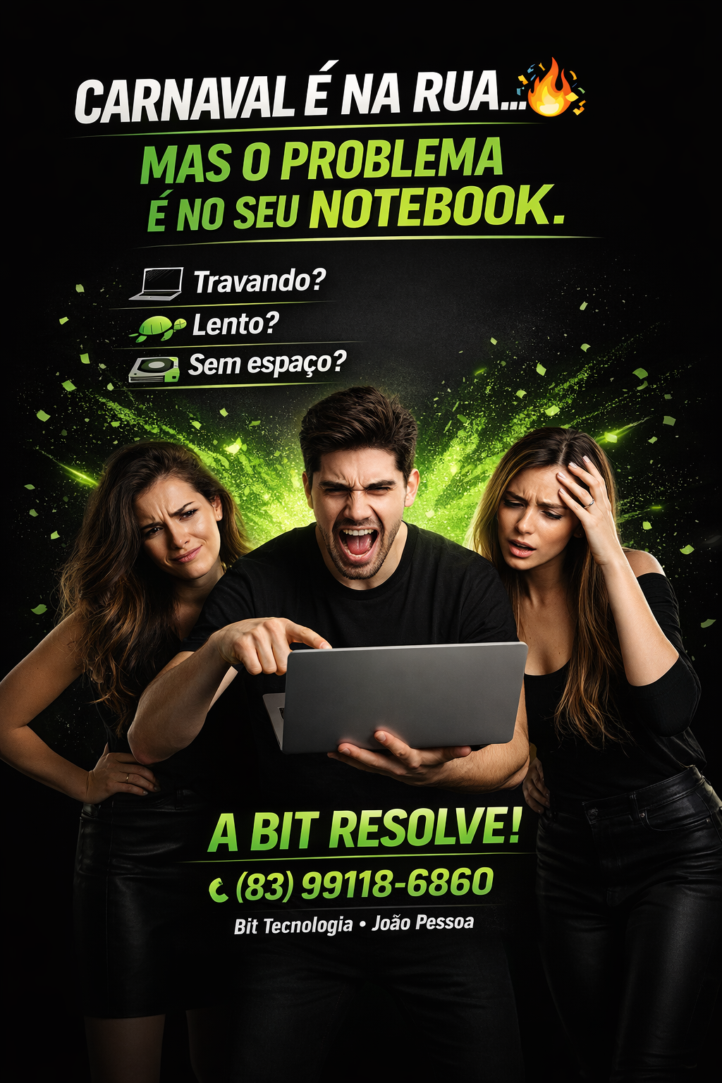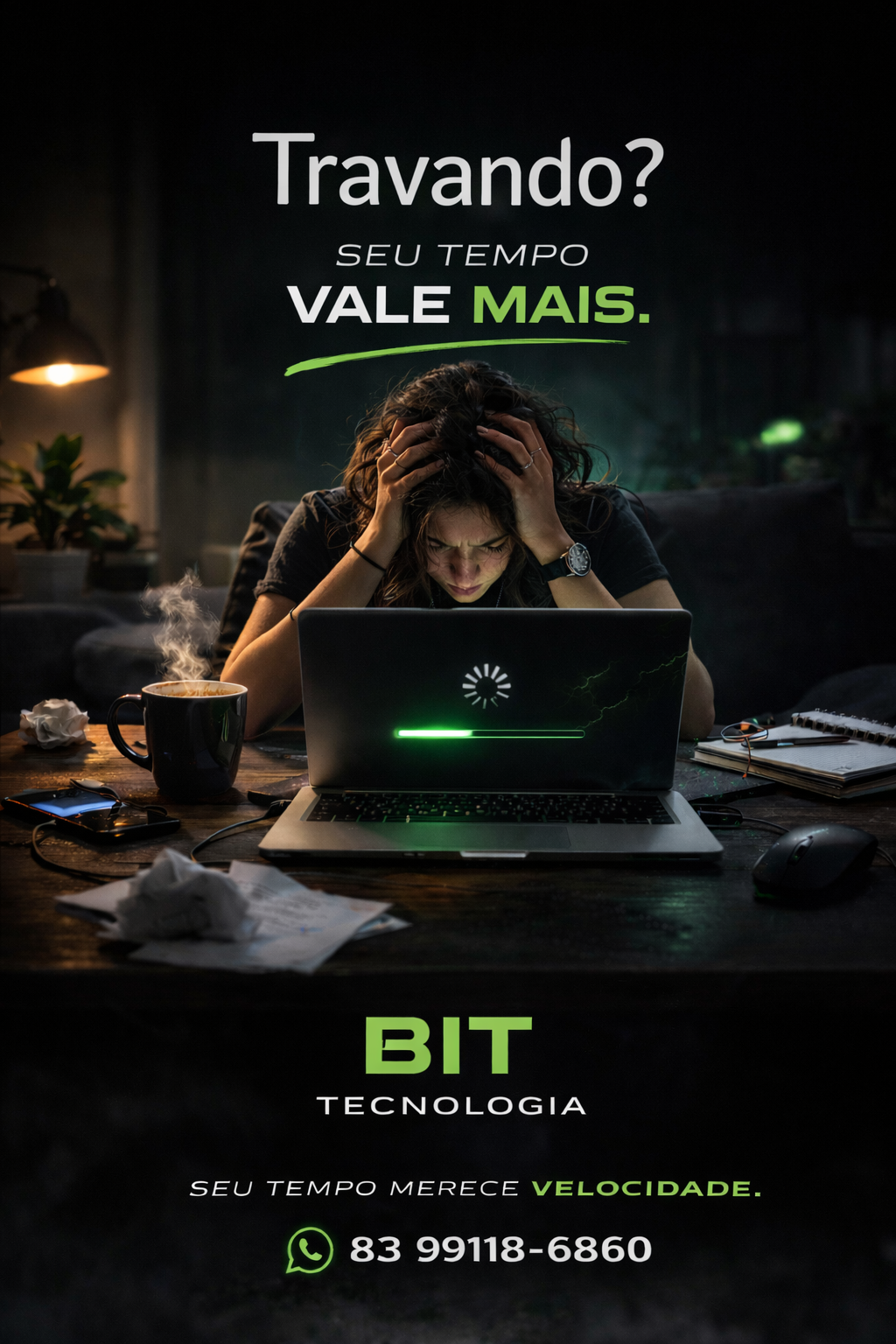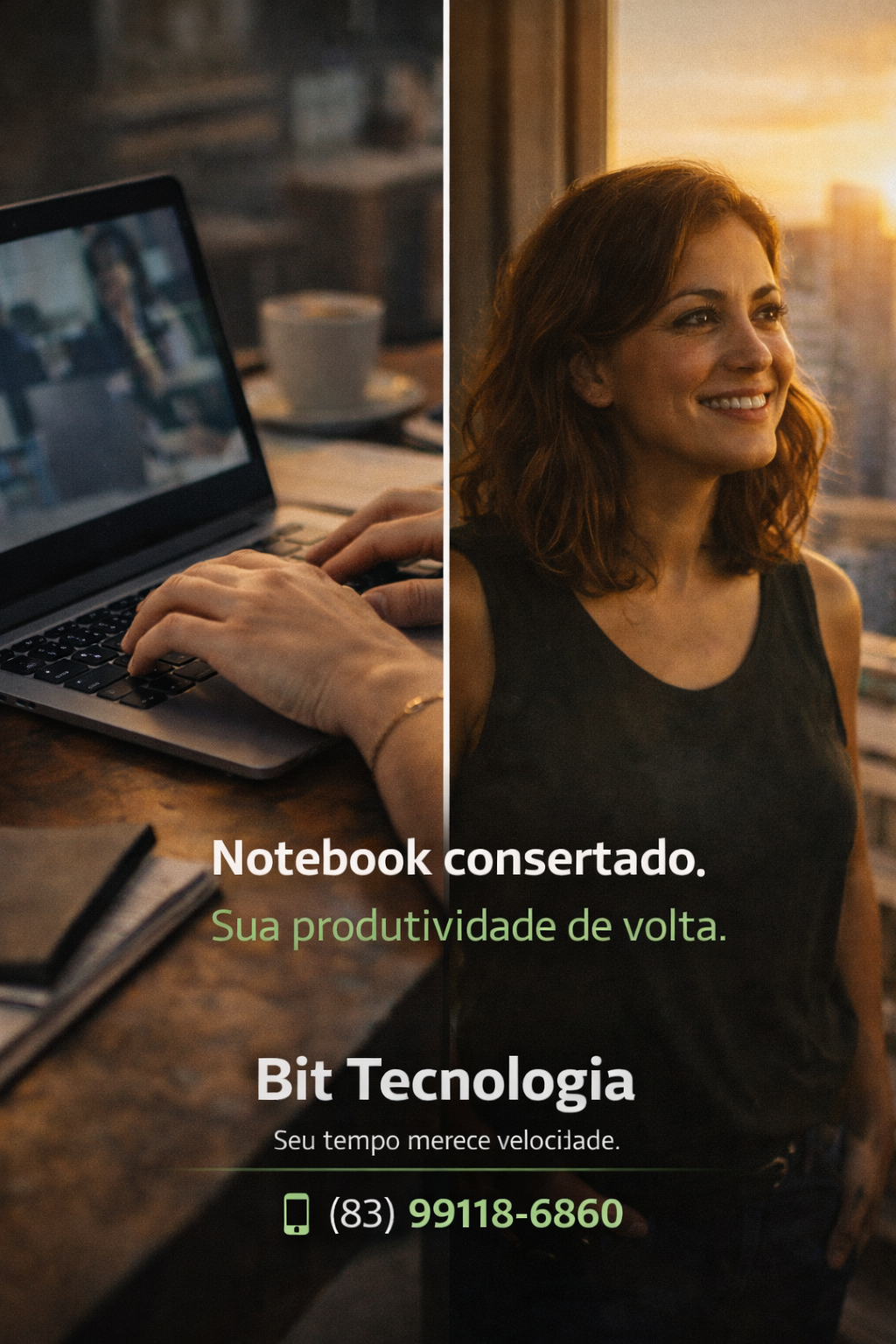 A Bit Tecnologia é especializada em conserto e manutenção de notebooks, computadores e MacBooks em João Pessoa – PB. Atendemos Manaíra, Tambaú, Bessa, Bancários, Torre, Mangabeira, Centro, Jaguaribe e toda a cidade. Realizamos troca de tela, teclado, bateria e SSD, instalação de Windows, Office e programas, upgrade de desempenho, montagem de PC Gamer, limpeza interna, remoção de vírus, backup de dados e reparos em placa-mãe, carcaça, dobradiças e vídeo. Trabalhamos com manutenção preventiva e corretiva, suporte remoto para todo o Brasil e atendimento em domicílio com busca e entrega. Orçamento grátis, rápido e sem burocracia. São mais de 10 anos de experiência, nota 5,0 ⭐ no Google e garantia em todos os serviços. 📲 WhatsApp: 83.99118.6860